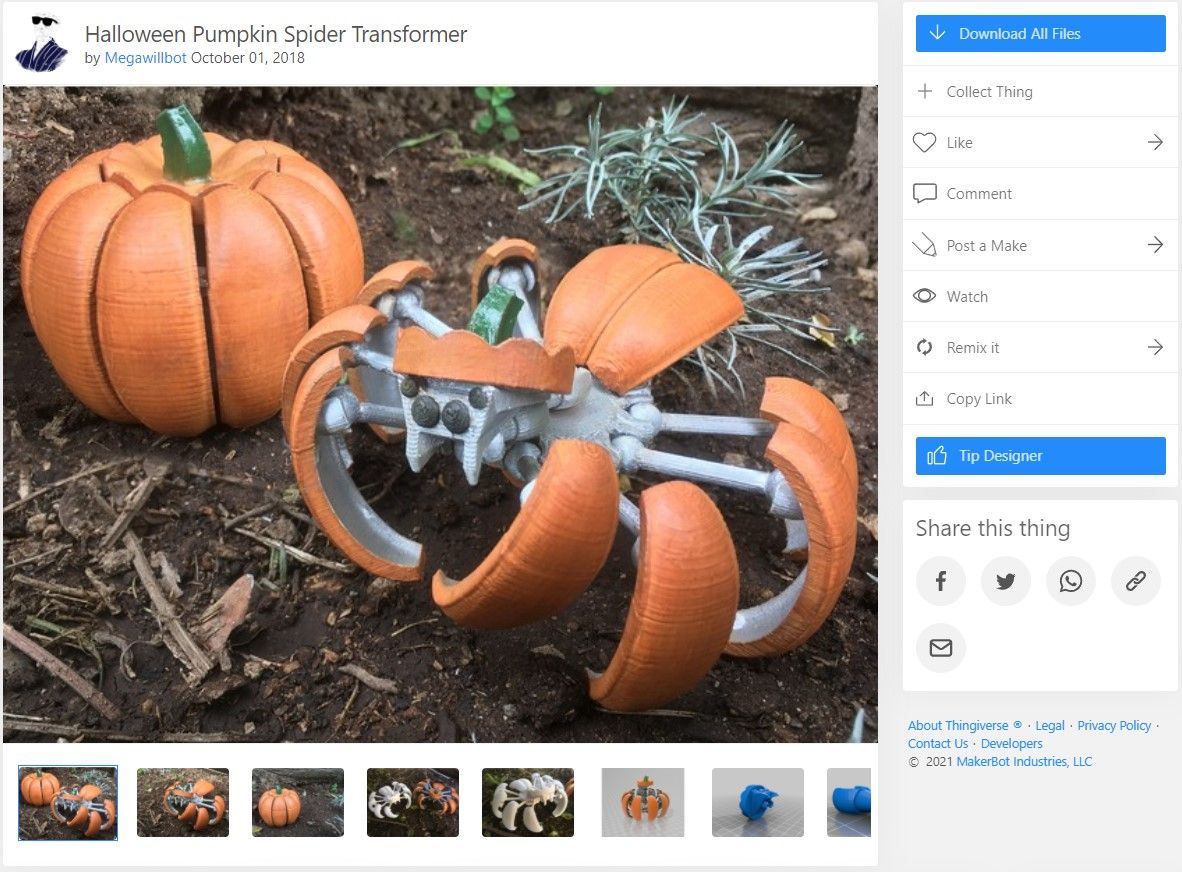 What’s scarier than a spider? A pumpkin that looks like a spider! This Transforming Pumpkin Spider by Megawillbot is a fun project that is great for kids and adults alike, giving you the chance to explore the world of basic engineering.