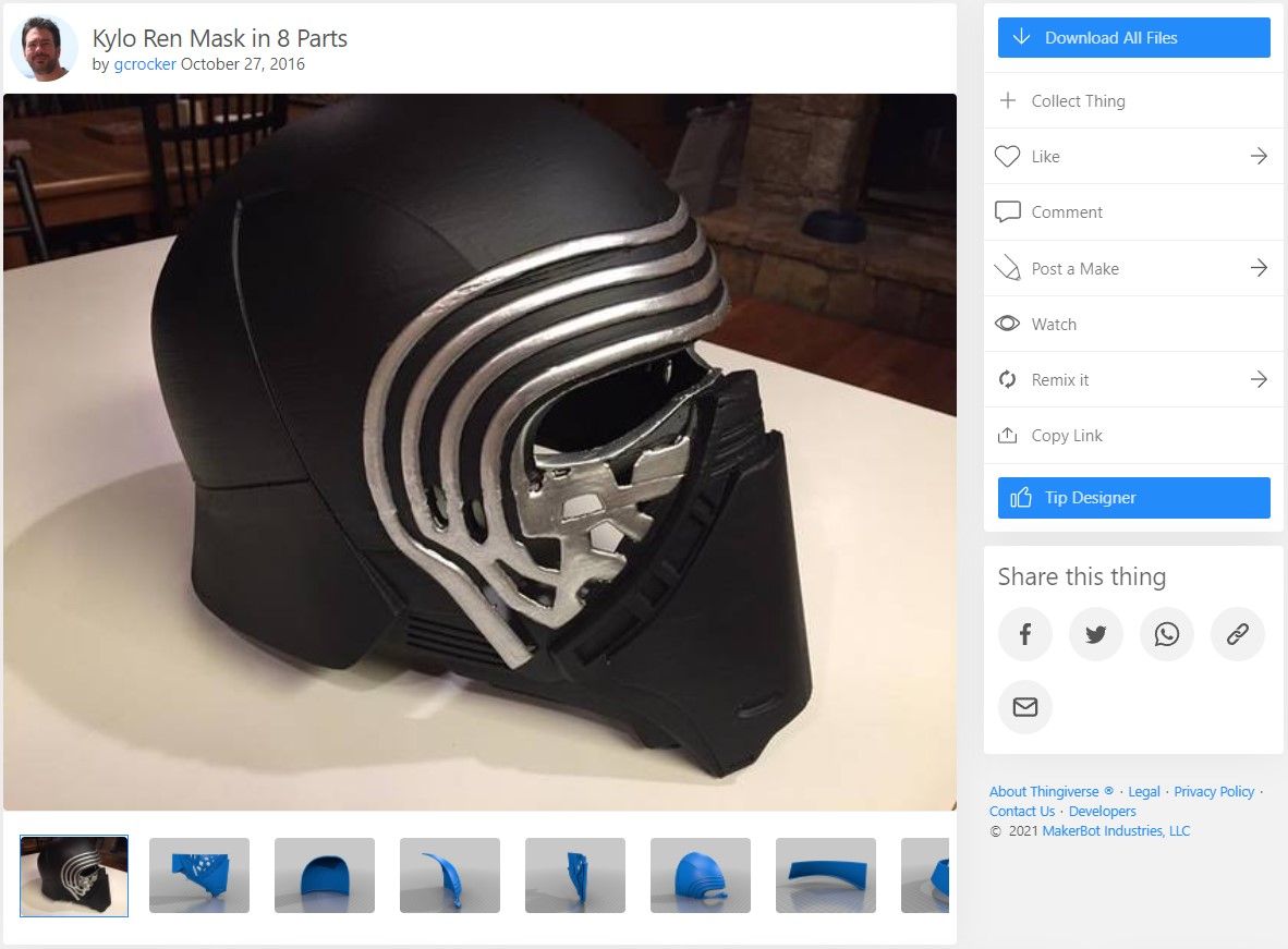 Costume accessories can also be a good use of your 3D printer. It can be very hard to find specific costume parts online, but your 3D printer can make just about anything you like. We’ve found a couple of good examples of costume accessories, though you will need to do some hunting if you already have a specific costume in mind.