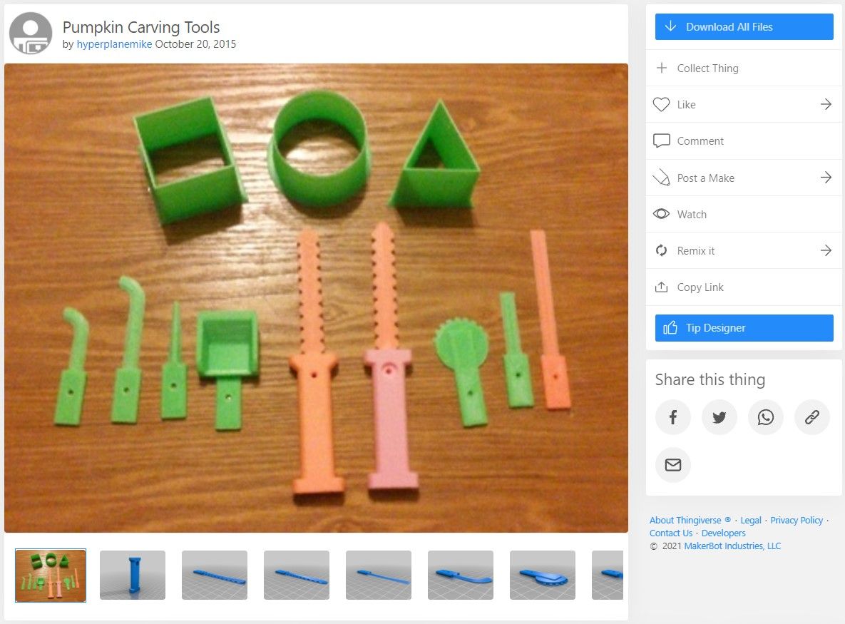Designed to make carving pumpkins a breeze, this Pumpkin Carving Tool Kit by Hyperplanemike is a great place to start when you’re looking for ways to make your carving easier. Coming with everything you need, this kit is easy to print and use, but you may want to use a material like PETG or ABS to ensure that the tools are strong enough.