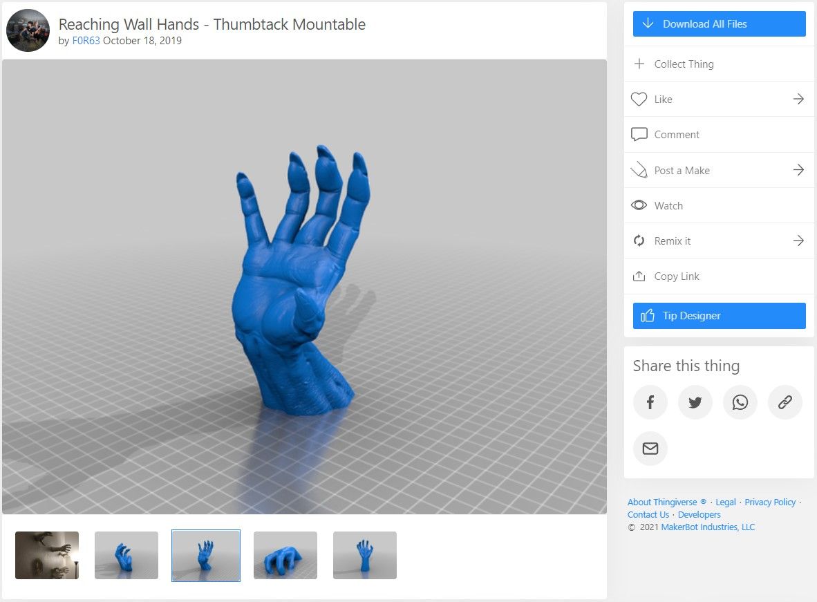 Let’s start with something really creepy. Mountable with thumbtacks, these Reaching Wall Hands by F0R63 are sure to leave all of your guests running for the door. They are easy to print, put up, and take down, making them a great start when it comes to making your home terrifying.