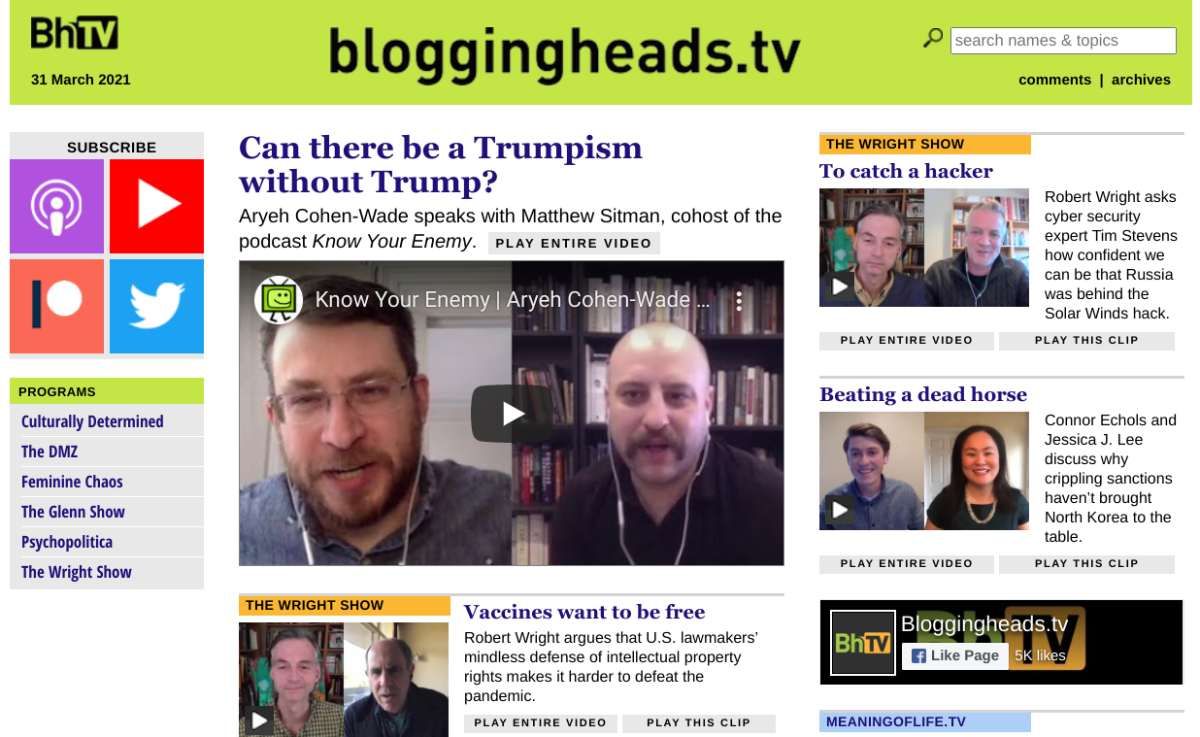 5. Blogging Heads and Meaning of Life (Web): In-Depth Conversations About Life-Changing Topics