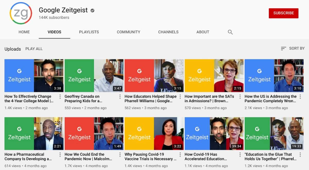 3. Google Zeitgeist (YouTube): Short Talks by Famous People