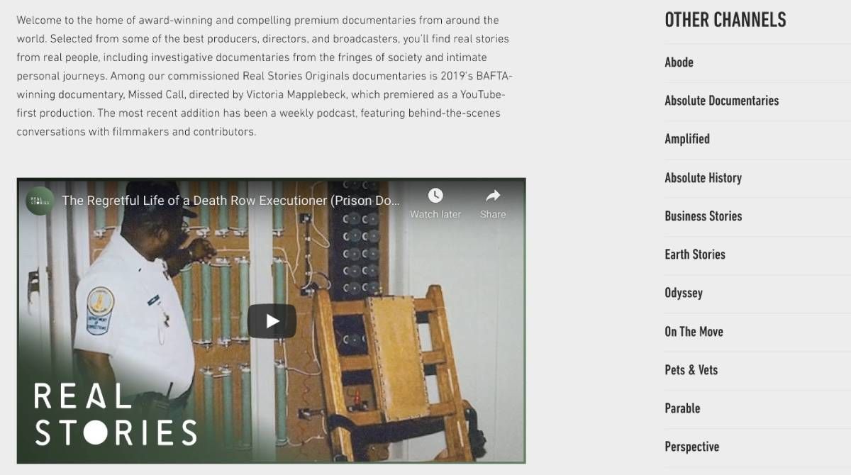 Their channel list includes Real Stories, Wonder, Spark, Real Life, Real Families, Real Crime, War Stories, Tonic, Perspective, On the Move, Business Stories, and several others who focus on informative videos. This includes both short stories as well as feature-length films and documentaries, all of which are free to watch on their YouTube.
