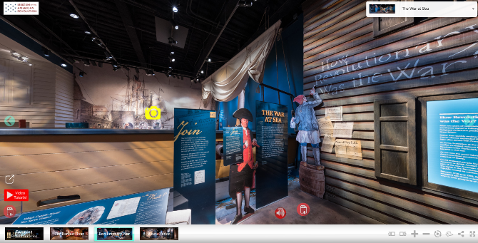 The museum and the virtual tour split the revolution into four sections: Becoming Revolutionaries, The Darkest Hour, Revolutionary War, and A New Nation. Each section has more elements and segments in it, for an experience that lasts over an hour in total. It’s one of the best interactive ways to learn history online.