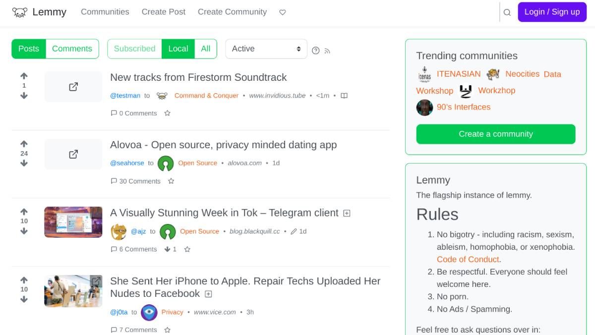 4. Lemmy (Web): Open Source Alternative to Reddit