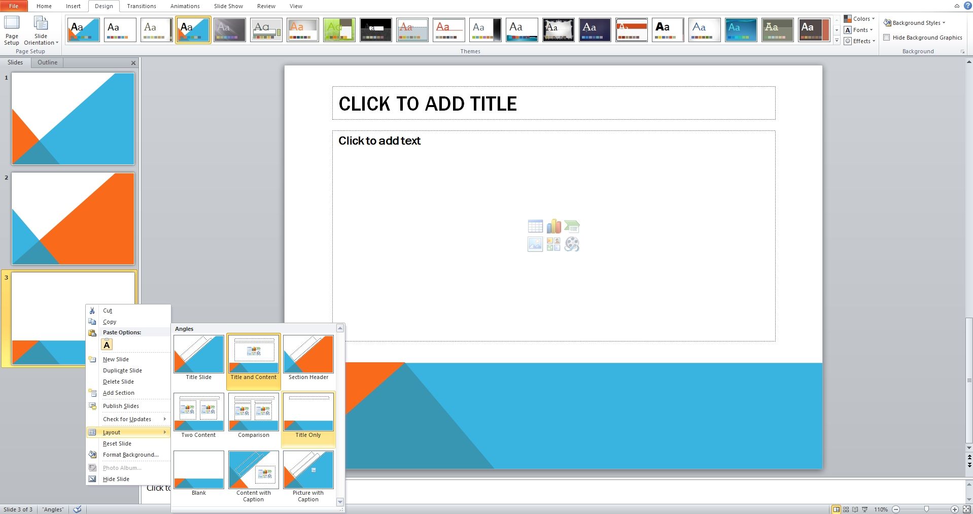 You could also choose to create your own template, but keep in mind that consistency is the key. There are many ways you can make your slides different while having a consistent theme/design.