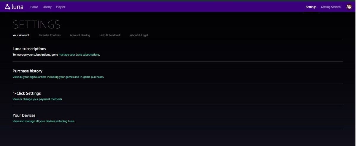 Right now, Luna’s Settings panel is the place to go to manage all of Luna’s different compatible devices and services. That includes your Luna+ subscription, any other channels that you subscribe to, and Ubisoft+ and Twitch accounts that you can link to your Luna account for additional content.