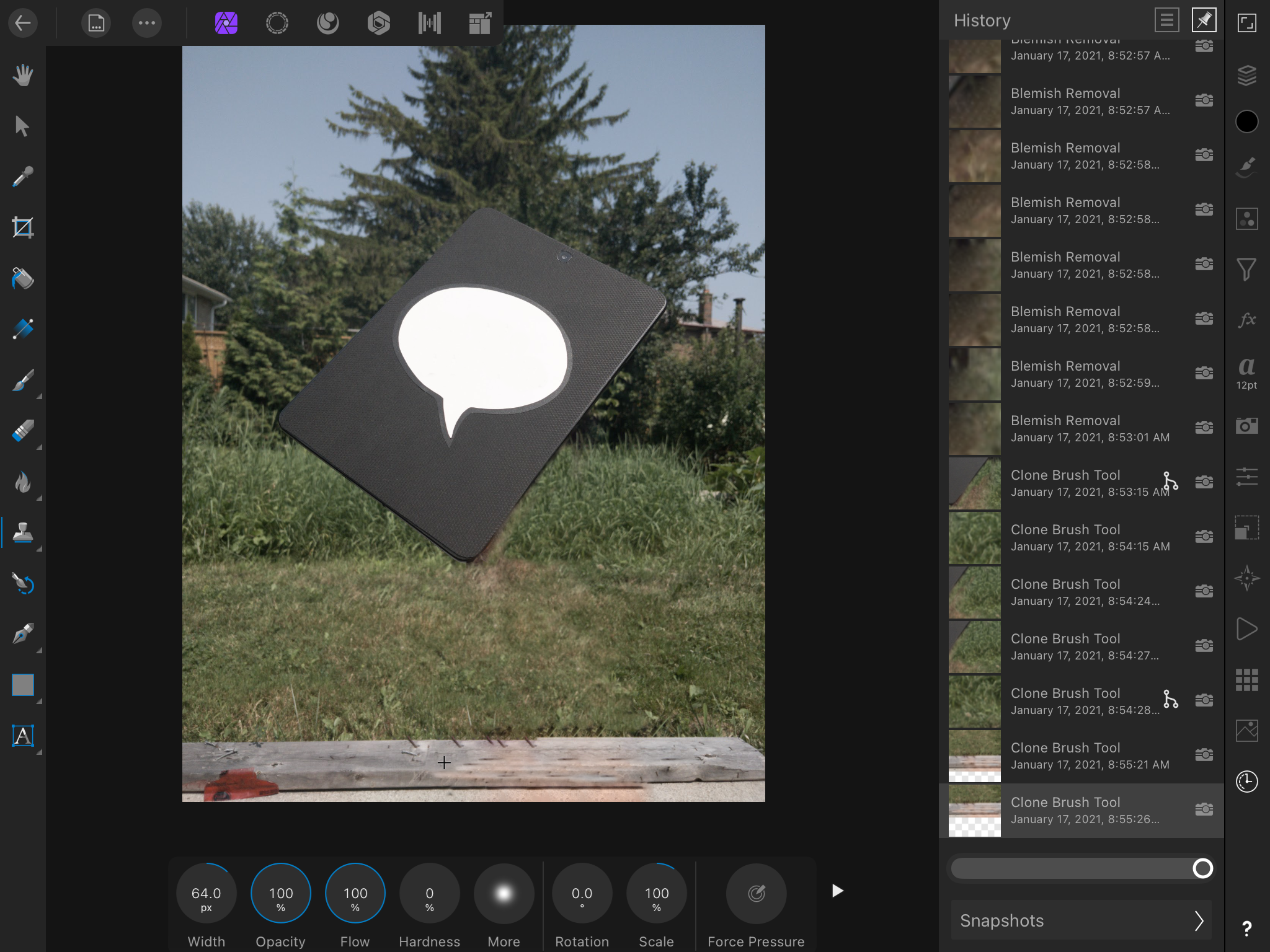 Using simple tools such as the clone stamp is not very pleasant without using a mouse, but on Affinity Photo, it’s very intuitive and surprisingly accurate. When comparing the two programs, it’s clear that Affinity Photo emphasizes a touch-first user experience that makes the accessories complementary rather than a necessity.