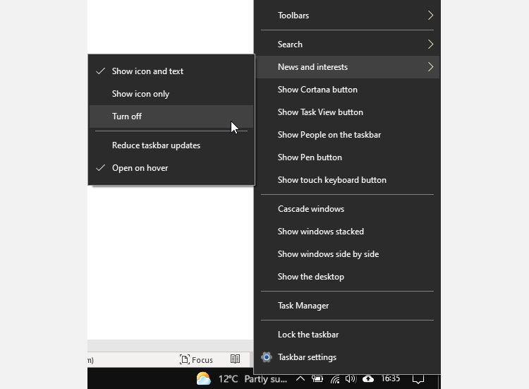 From this menu, you can also choose to reduce the size of the news and interest logo on your taskbar, reduce its update frequency, and stop news and interests from appearing when you hover over the icon.