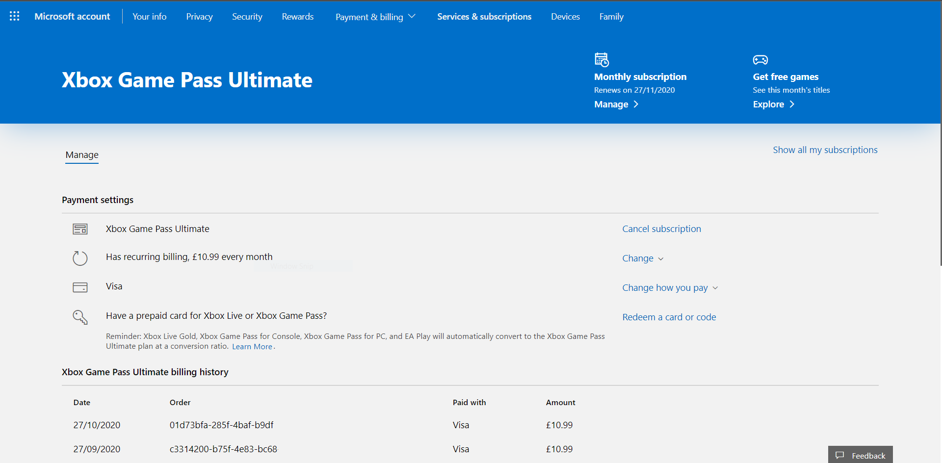 Decided you want to re-subscribe to Game Pass after canceling, it’s pretty straightforward. You can sign up again from your console or go to the Microsoft Account page.