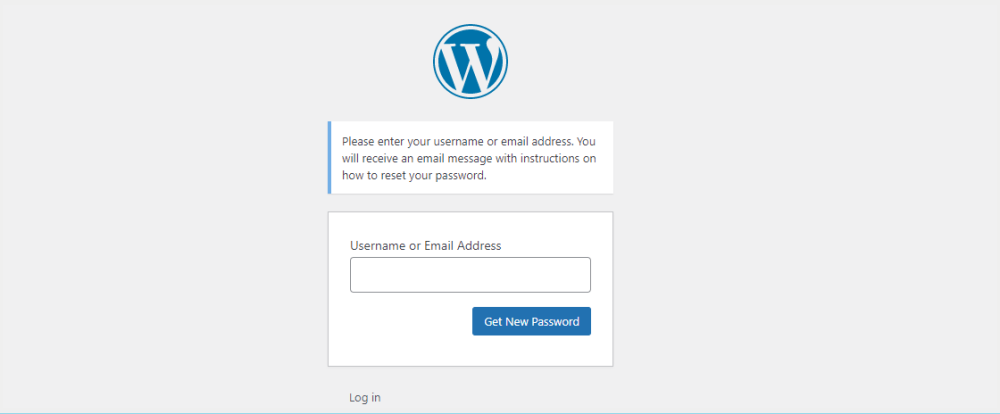 This option will instantly open a window where you input your username or your registered WordPress email address. The system will send a password reset link to your email.