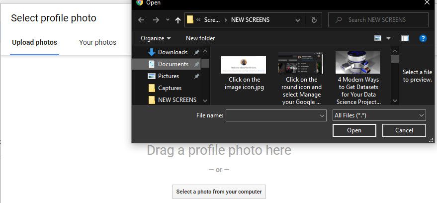 On the next menu, click on Select a photo from your computer to browse your PC for your picture of choice. Or select Your photos at the upper part of the screen to select from the pictures you’ve previously uploaded to the cloud.