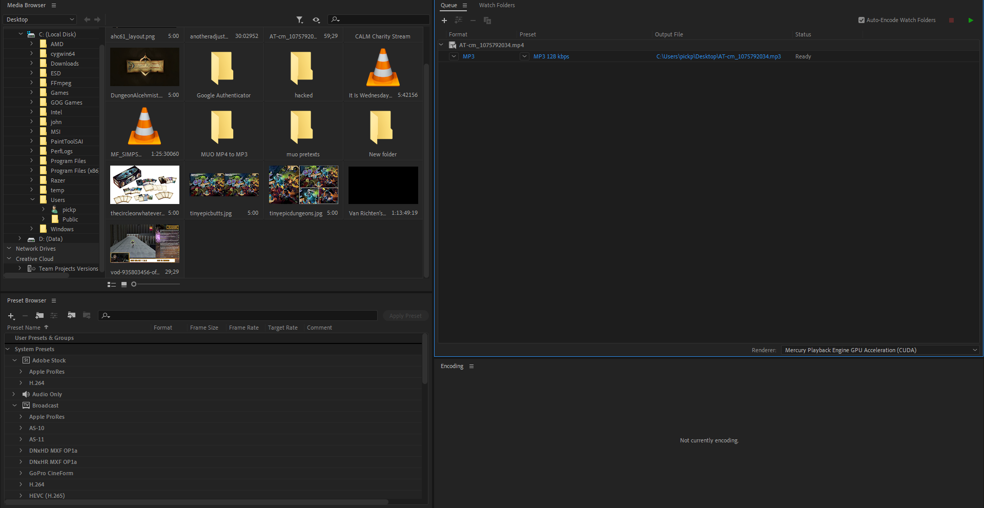 Another piece of software included in the Adobe Creative Cloud is the Adobe Media Encoder. This software’s entire purpose is converting media between different types, so it’s perfect for converting MP4 to MP3.