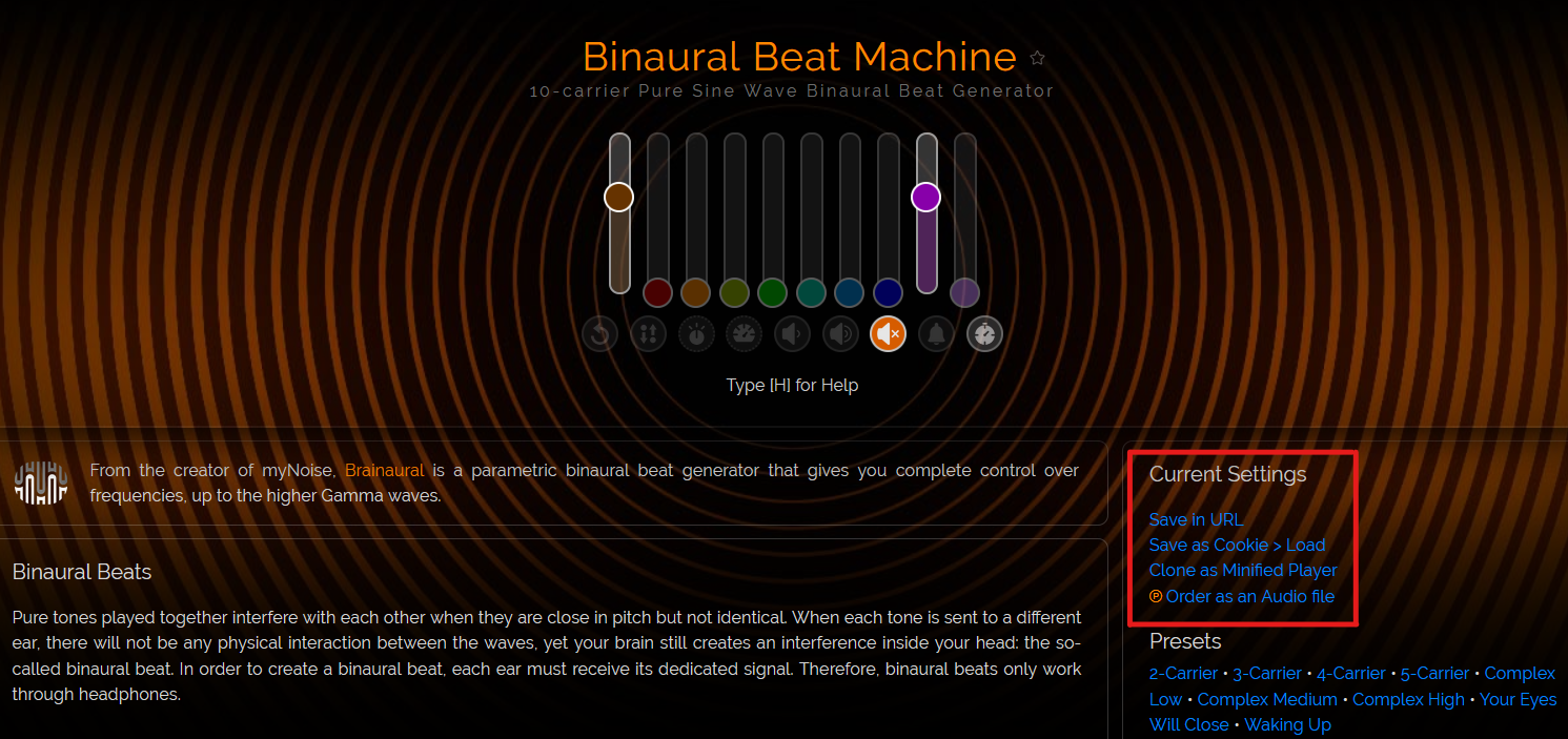 That aside, here’s how to create your own binaural beats in MyNoise.