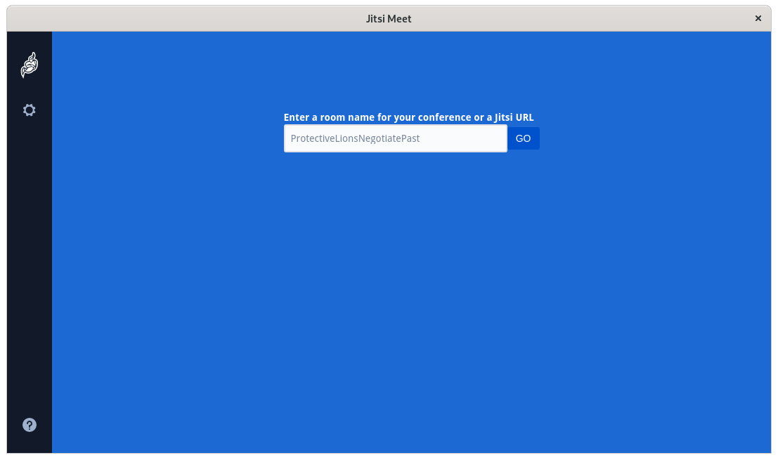 In Jitsi, the process for creating or joining a room is exactly the same. In the home window, enter the name of a room you wish to join. If a room doesn’t already exist with that name, Jitsi will create a new one for you. If the room does, then you will join the existing room.
