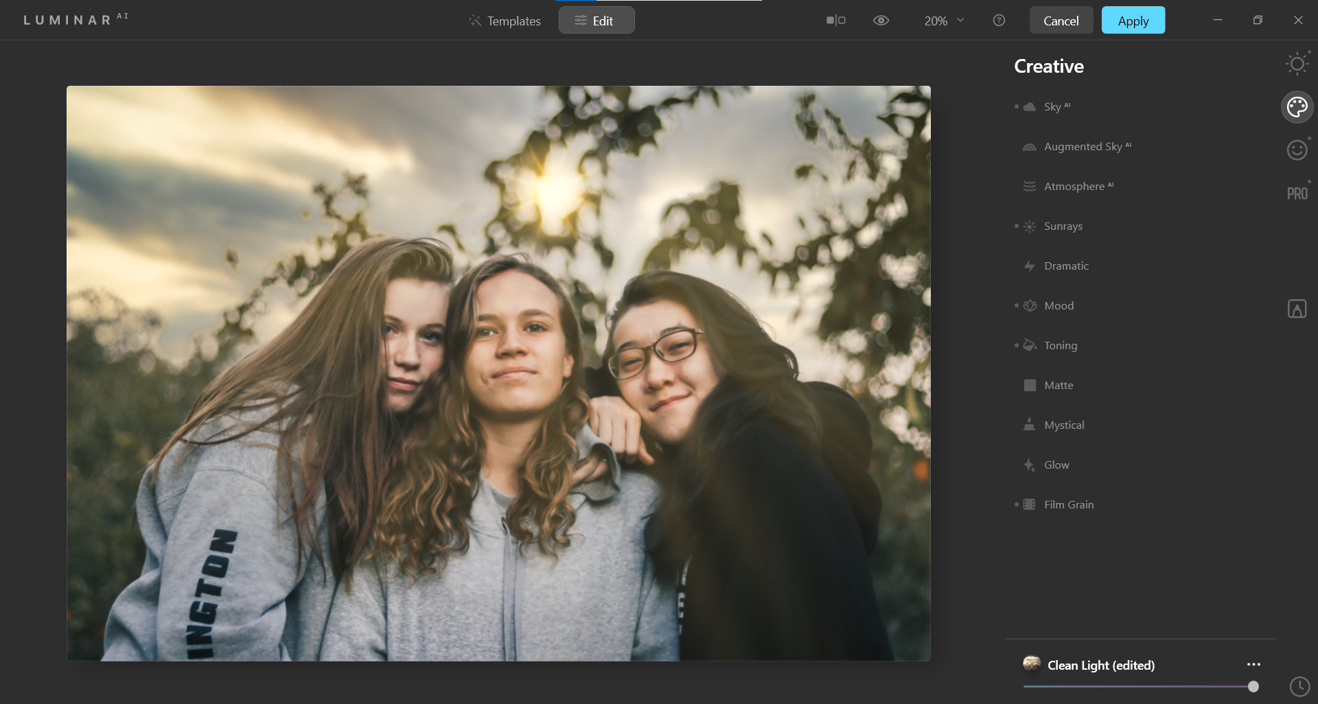 Templates are great places to begin editing your photos in Luminar AI. Here is another example where we used the Glow effect from the Experimental template, and then made additional changes in the Edit menus.