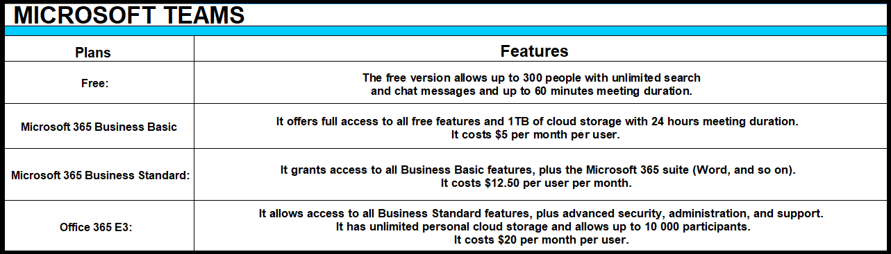 Both Microsoft Teams and Zoom offer a free version of their platforms, alongside paid plans for access to more advanced features.