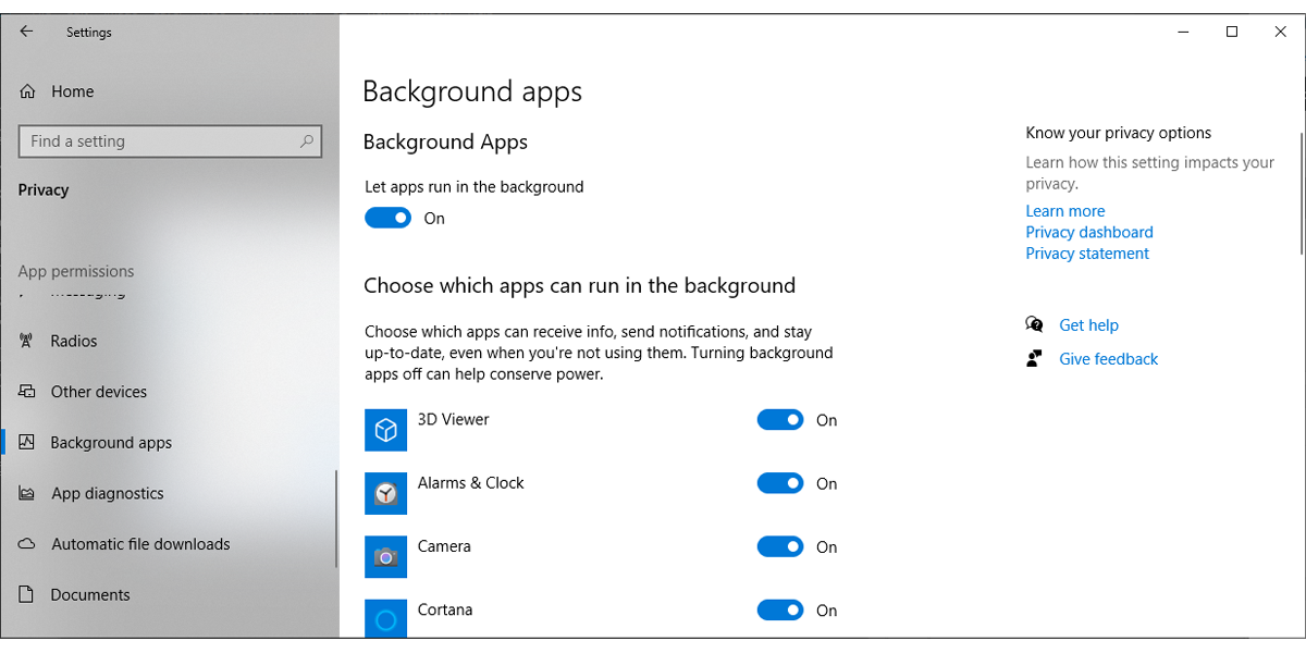 - Turn on the toggle below Let apps run in the background. If it’s already enabled, turn it off and turn it back on.