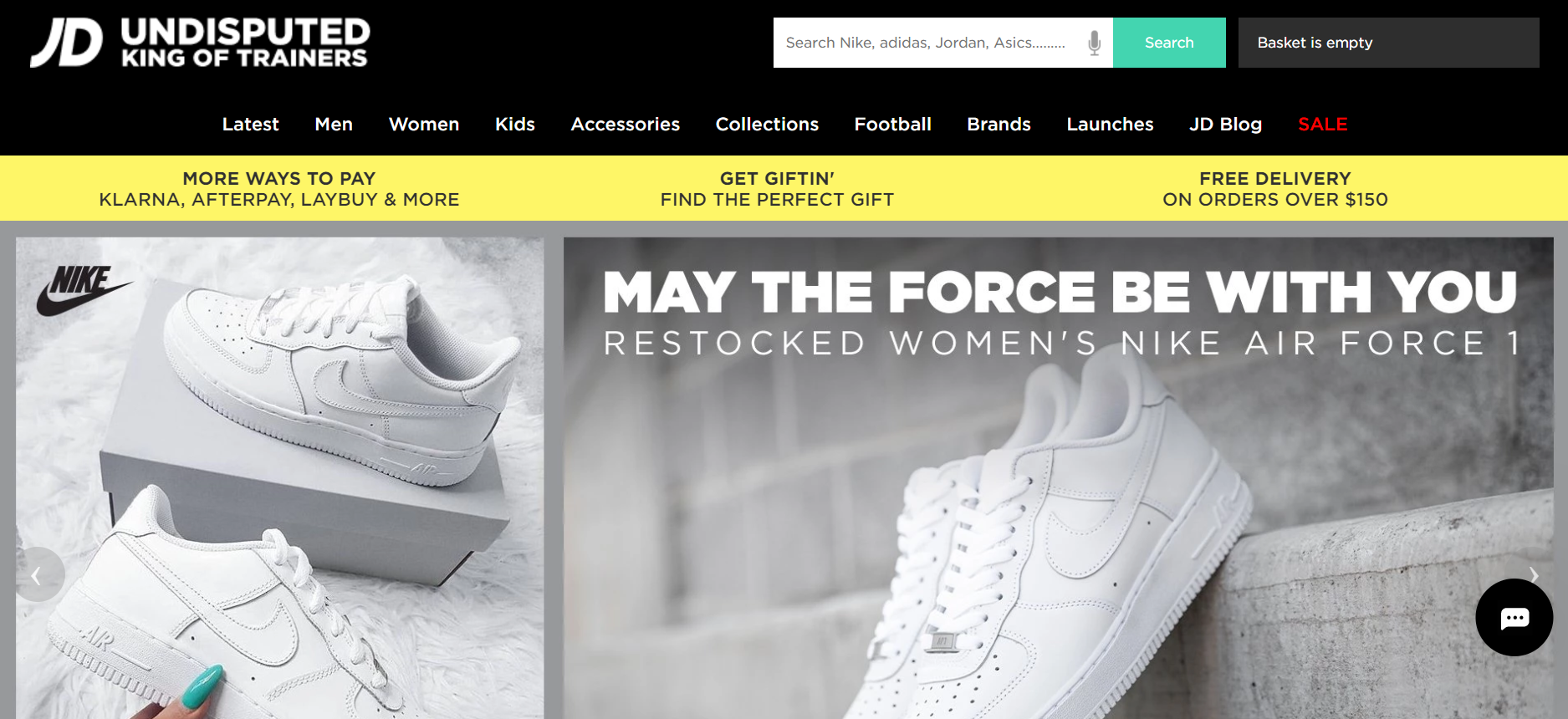 The website calls itself the “King of Trainers”, and with the selection of sportswear and shipping options available, it is indeed. JD Sports partners with the biggest brands in sports, and offers buyers competitive prices on the latest and most stylish sports apparel.