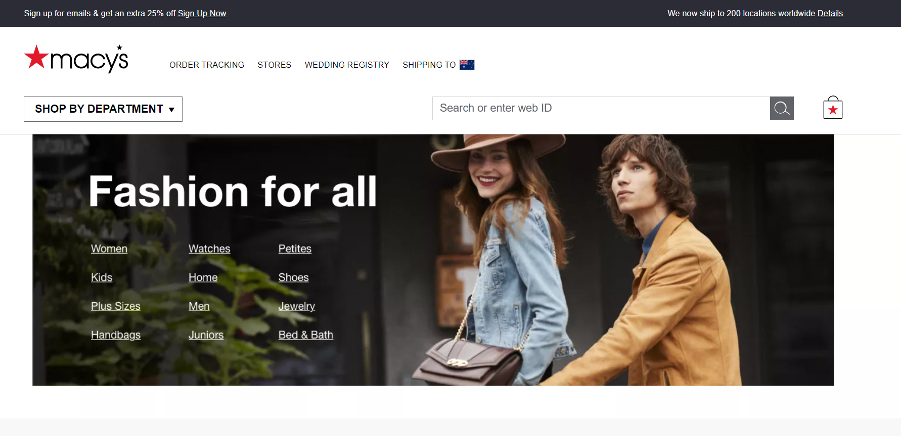 Tip: Did you also know that Macy’s now ships worldwide to 200 regions, including India?