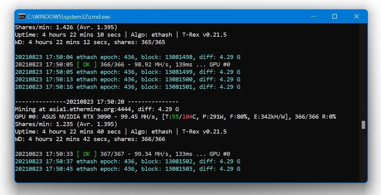 Developers frequently push out updates to this mining software, so you don't have to worry much about the security. A recent T-Rex Miner update added memory junction temperature to the console, allowing users to get an accurate representation of how hot their RTX 30 series GPUs with GDDR6X memory actually are.