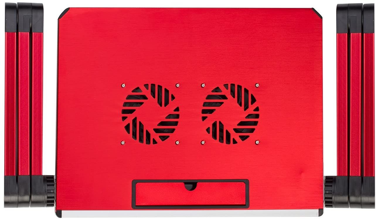 The handy mouse pad also offers indentations for your phone or coffee mug, as well as a USB fan to keep your laptop cool. A small drawer stores items, but the stand itself may not accommodate laptops over 17 inches.