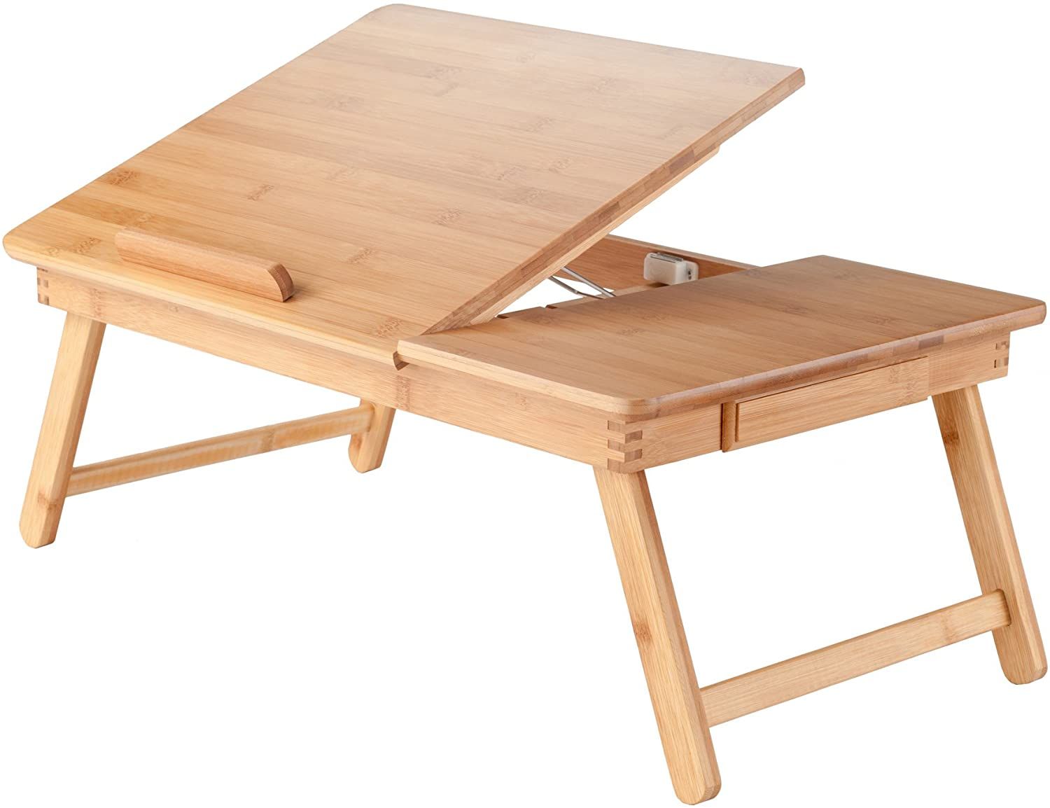 You can lock the top table into one of four incline settings and make use of the small drawer on the side to store pens, pencils, and even a phone. While the top can be adjusted, the lack of adjustable legs is notable in the Winsome Baldwin Bed Tray.