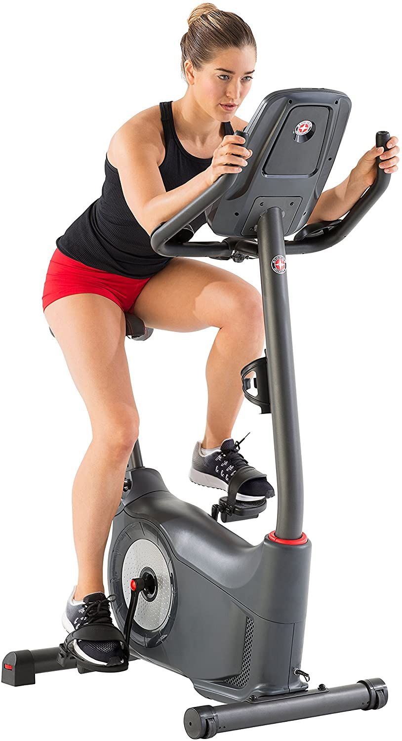 If you’re not happy with just a standard exercise bicycle and want something with a little more punch, try the Schwinn 170 Upright Bike. You can select a preset course to ride down, which adjusts your ride as if you were going up and down hills.