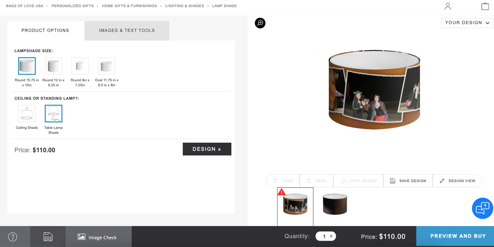 The website Bags of Love has a section dedicated specifically to designing lampshades. Just like with other items on this list, you can pick a lampshade style, a template for the design, upload your photos and add text to create a unique lamp.