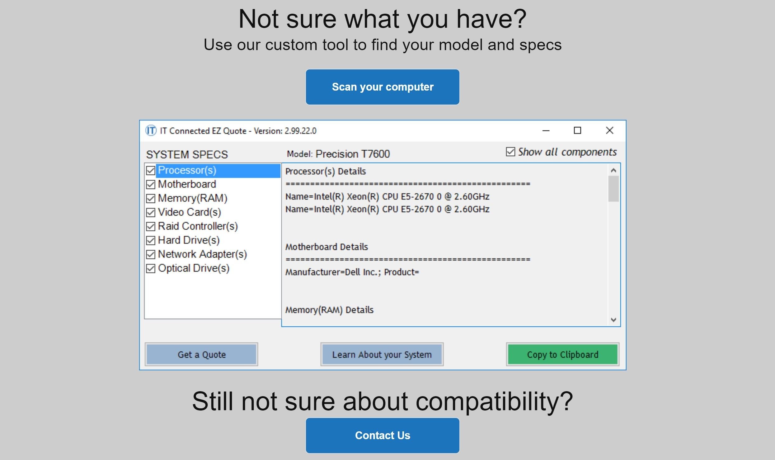 IT Connected is more than just a computer parts buyer, it also helps you find parts that you could use to upgrade your system. It even includes a tool that helps you find the parts you need based on your specs.