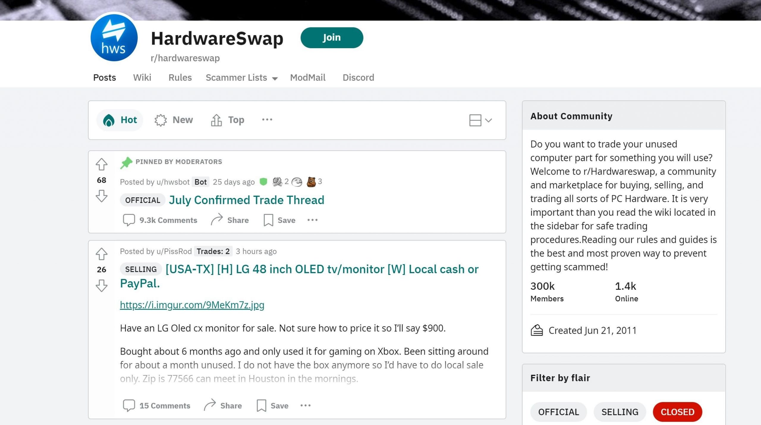 Not as widely used as other platforms on this list, Reddit has multiple Subreddits where you can sell almost any type of item you have. Subreddits are basically small communities that center around a specific topic. You would want to find the computer marketplace Subreddits like the one in the picture to get rid of your unwanted parts.